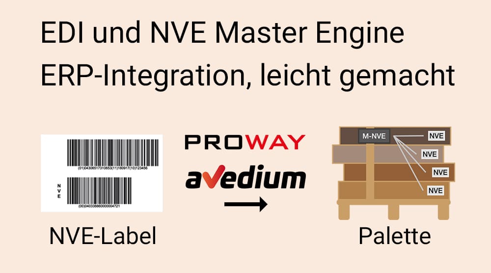 Die Avedium Technologie GmbH wird strategischer Partner im Bereich EDI. Die Proway stellt aus dem Bereich PBW der eigenen Warehousemanagement-Lösung (WMS) Ihre NVE / SSCC, in Form der NVE Master Engine der Avedium EDI-Lösung als integrierte Funktionserweiterung zur Verfügung.